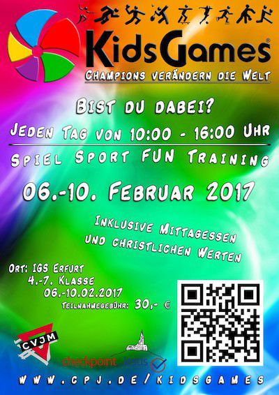 Der cpJ und der CVJM Erfurt e.V. laden alle Schüler der 4.-7. Klassen zu den KidsGames 2017 ein.